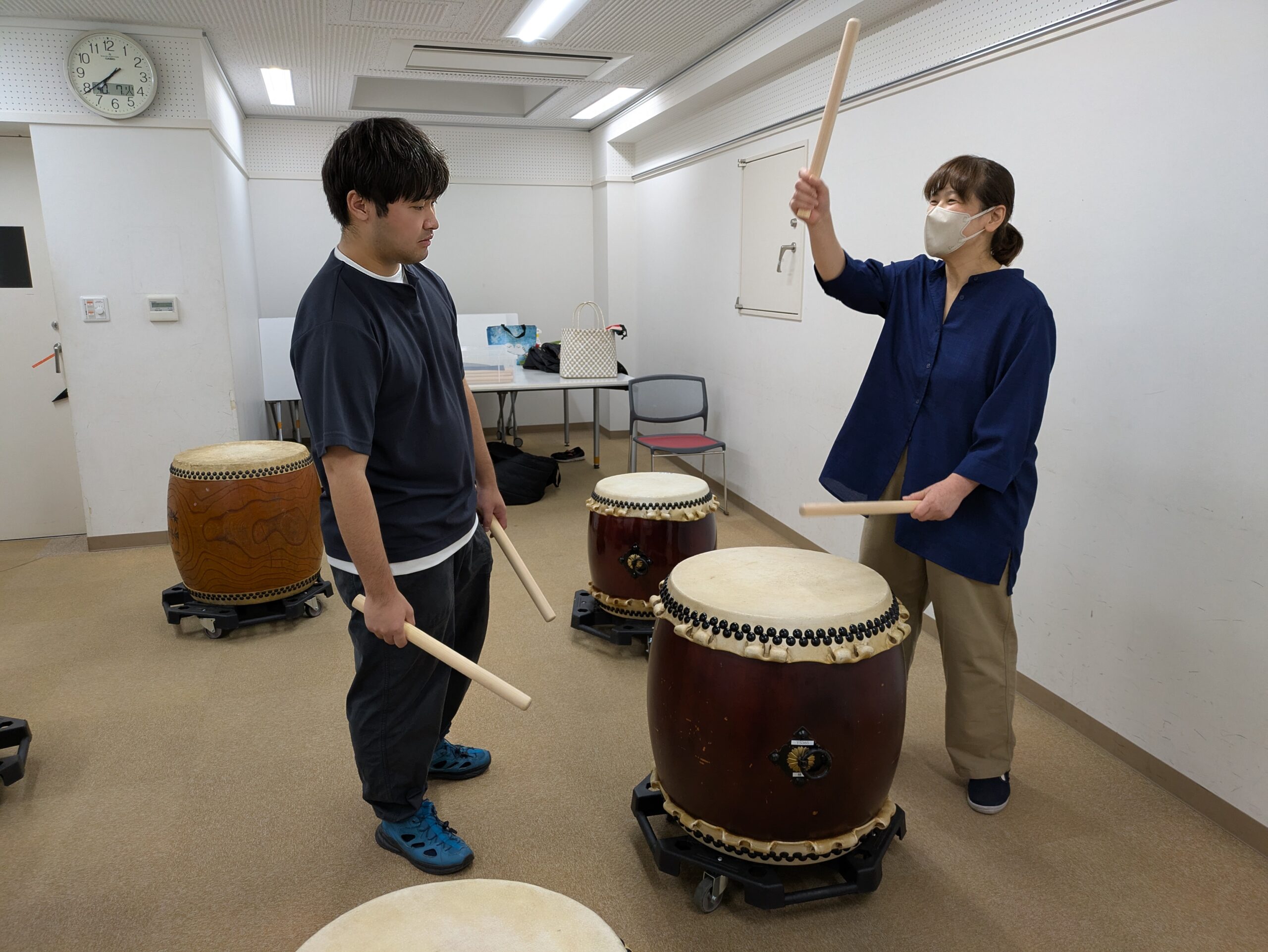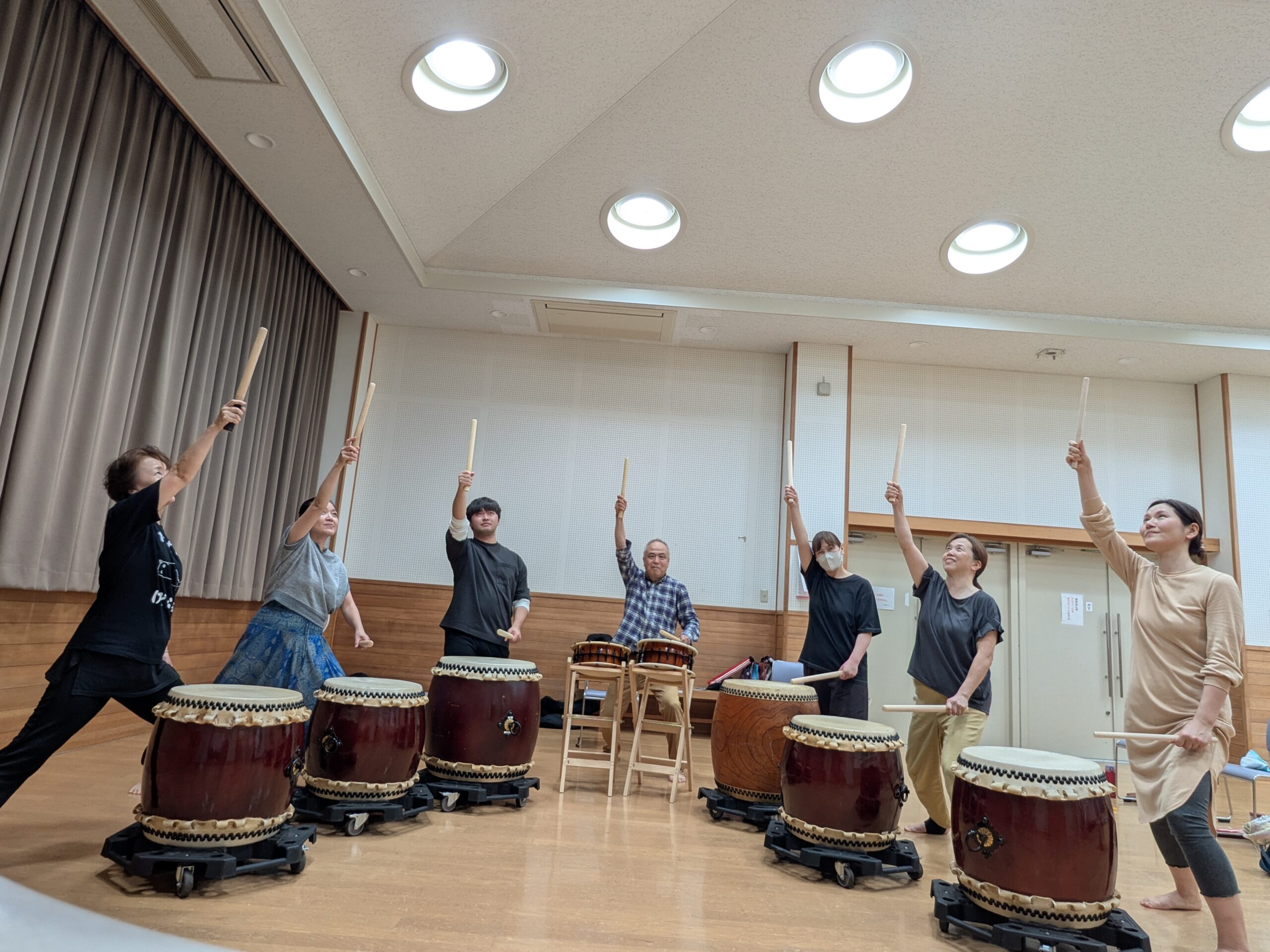 はじめてバチを握る方が大半で、太鼓をたたくのは幼少時以来という方などが参加しています。