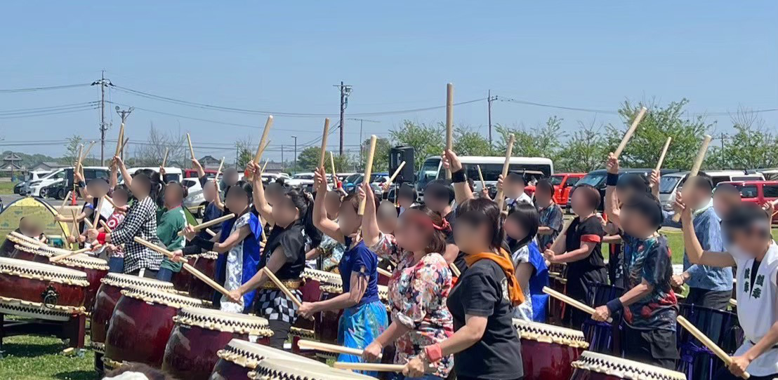 日本太鼓協会指導員会が主催する太鼓まつりは、合同演奏曲で繋がったチームが多数参加します。演奏プログラムの中に合同演奏曲が盛り込まれ、チームの枠を超えて一緒に演奏するシーンが登場します。